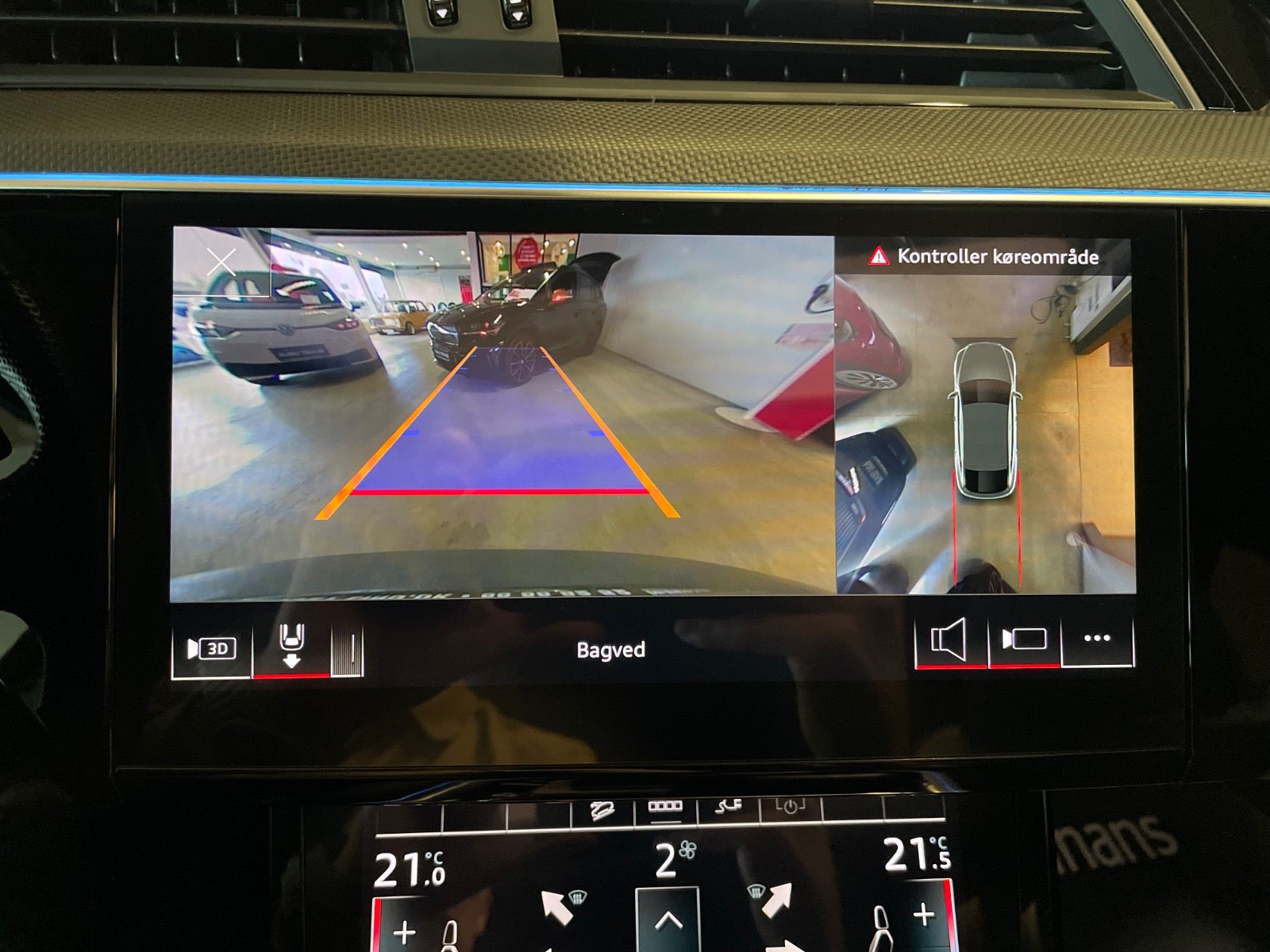 🔹 360° omgivelseskameraer (for, bag og side) + P-sensor for/bag (aktiv kantbeskyttelse)